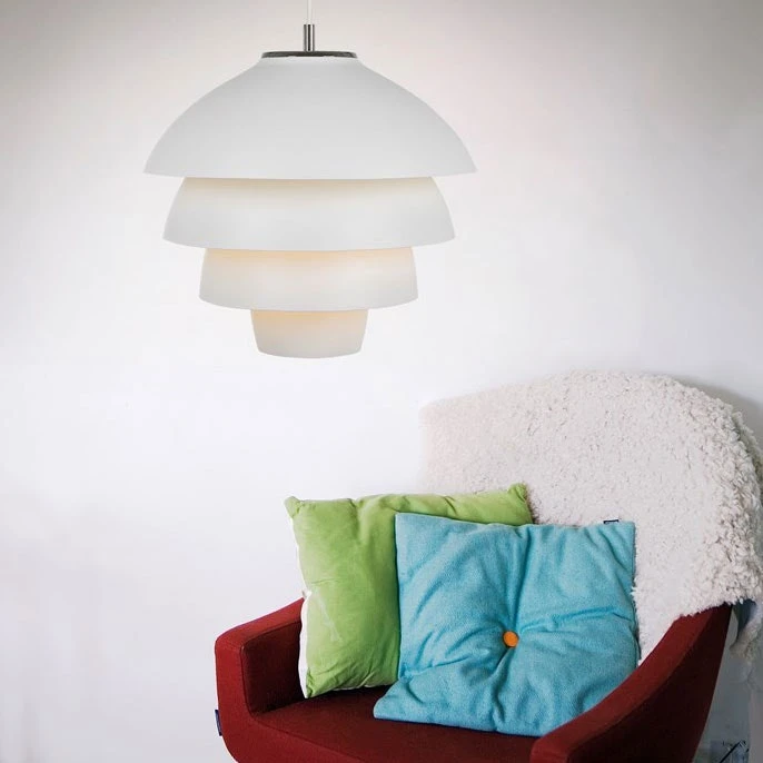 Valencia Anhänger der Marke Belid. Moderne und populäre Deckenleuchte für Deckenhaken angepasst. Eine diffuse weiche Strahlungslamelle Kontraktion, die aus hängenden Trauben Klassen seine Form erhalten hat. Die Lampe passt auch die Küche als Wohnraum zu hängen in.