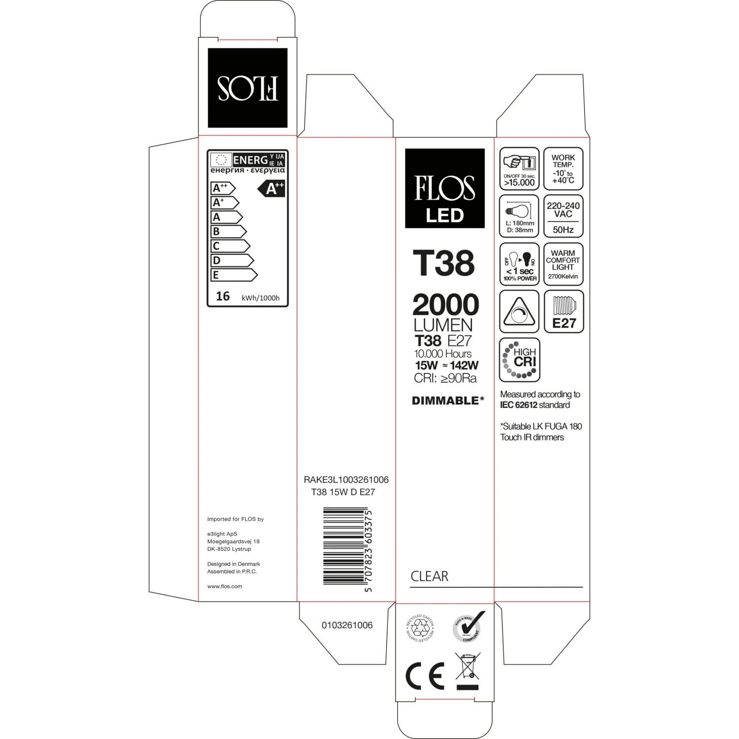 Flos RAKE3L1003261006 LED E27 T38 15W 2000lm Proxima 2700K Dimmable