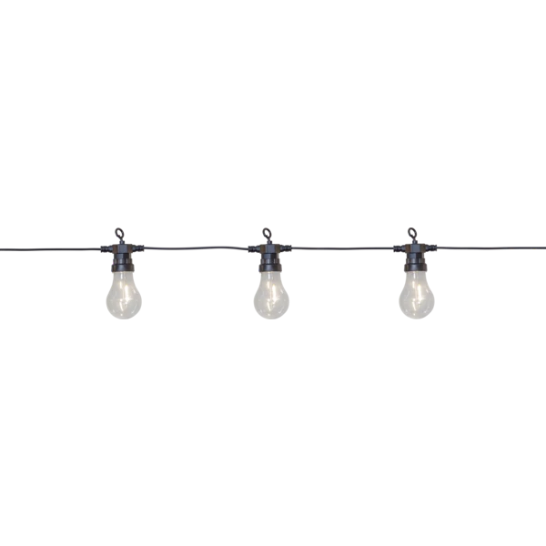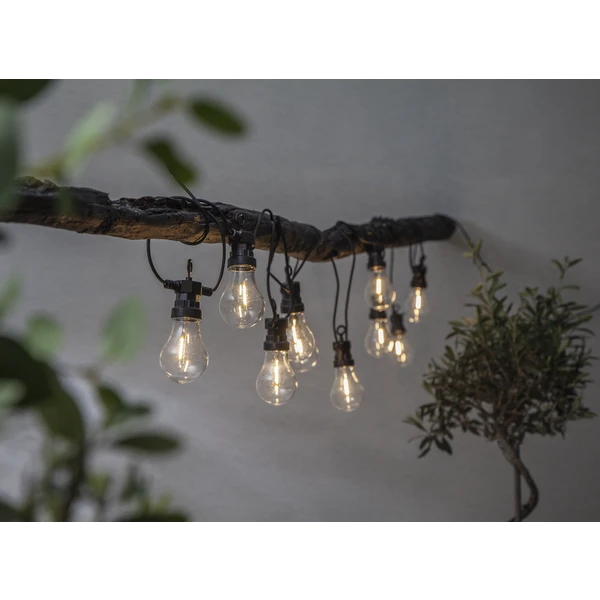 Die Lichterkette von Star Trading ist perfekt für draußen und hat ein klassisches Design mit klaren LED-Lichtquellen, perfekt um im Garten aufgehängt zu werden und ein behagliches Gefühl zu schaffen.