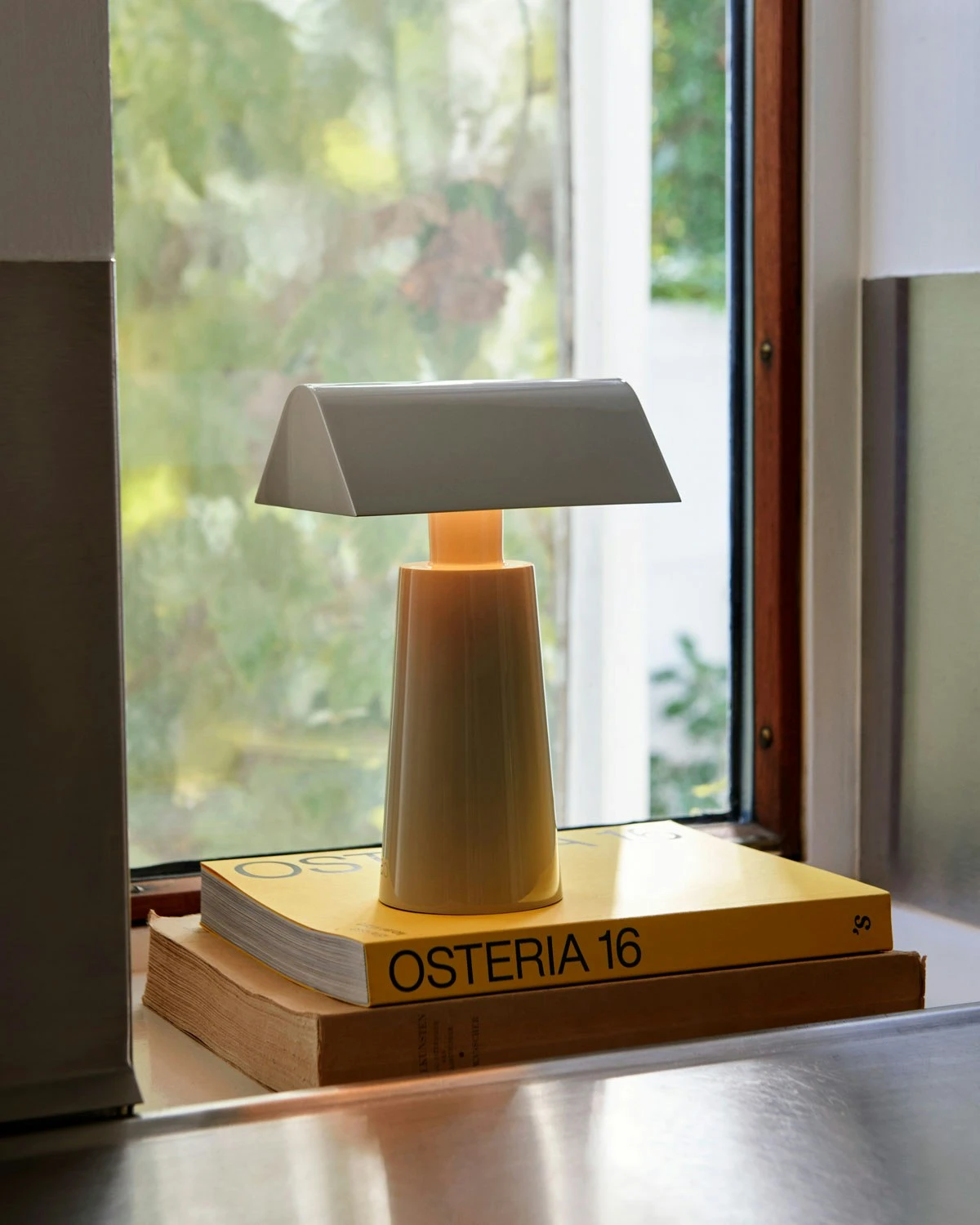 – Tragbares Design mit dreieckförmigem Lampenschirm.