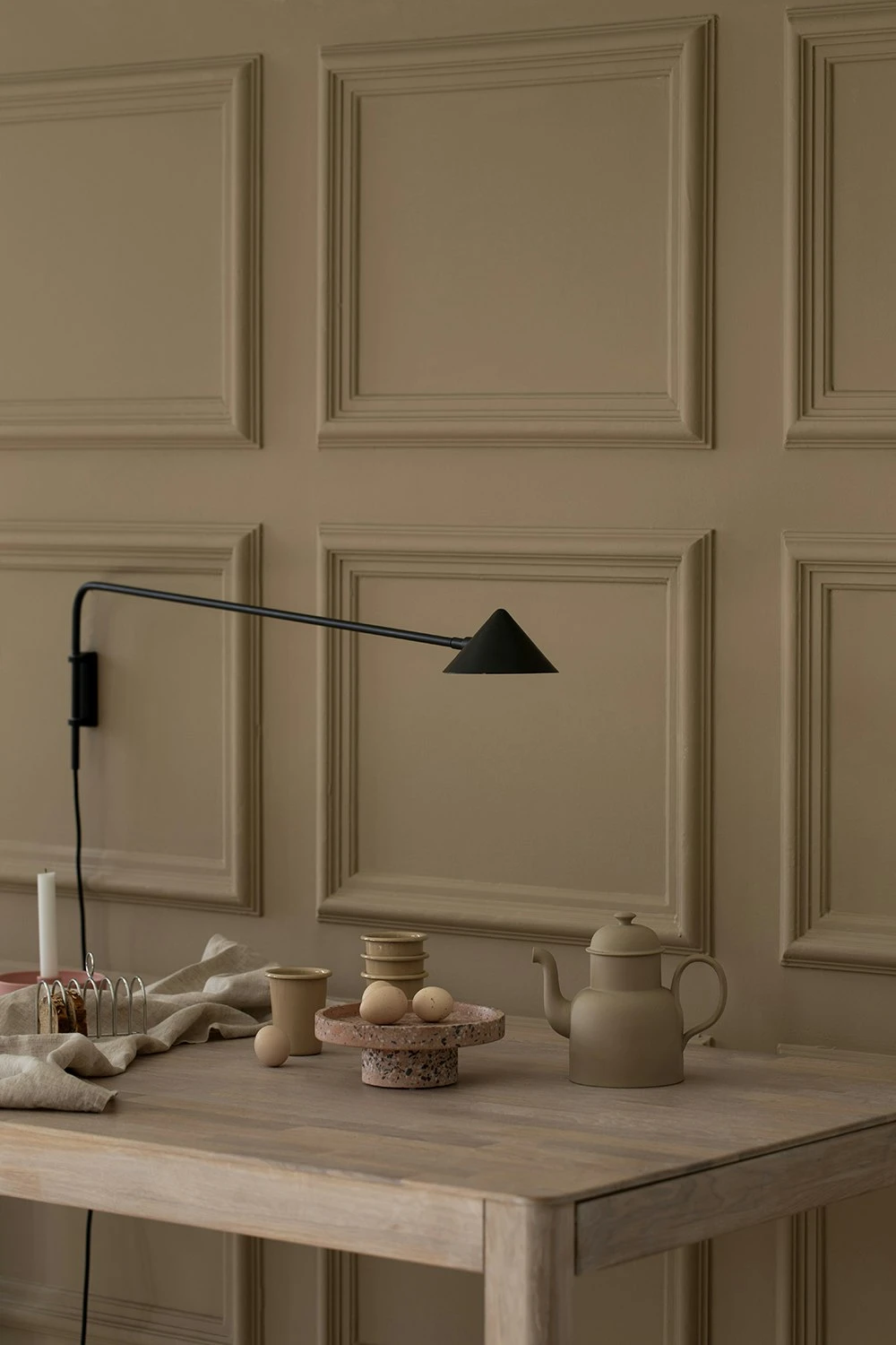 Elegante Wandleuchte von Watt & Veke. Die Leuchte ist mit einem Winkelbild versehen, so dass das Licht leicht in der gewünschten Richtung gelenkt werden kann. Erhältlich in zwei verschiedenen Farben, schwarz und Messing und eine Nummer kleiner. Dimmer an der eleganten Textilkabel enthalten. Gut zu wissen: Die Lichtquelle muss separat erworben werden.