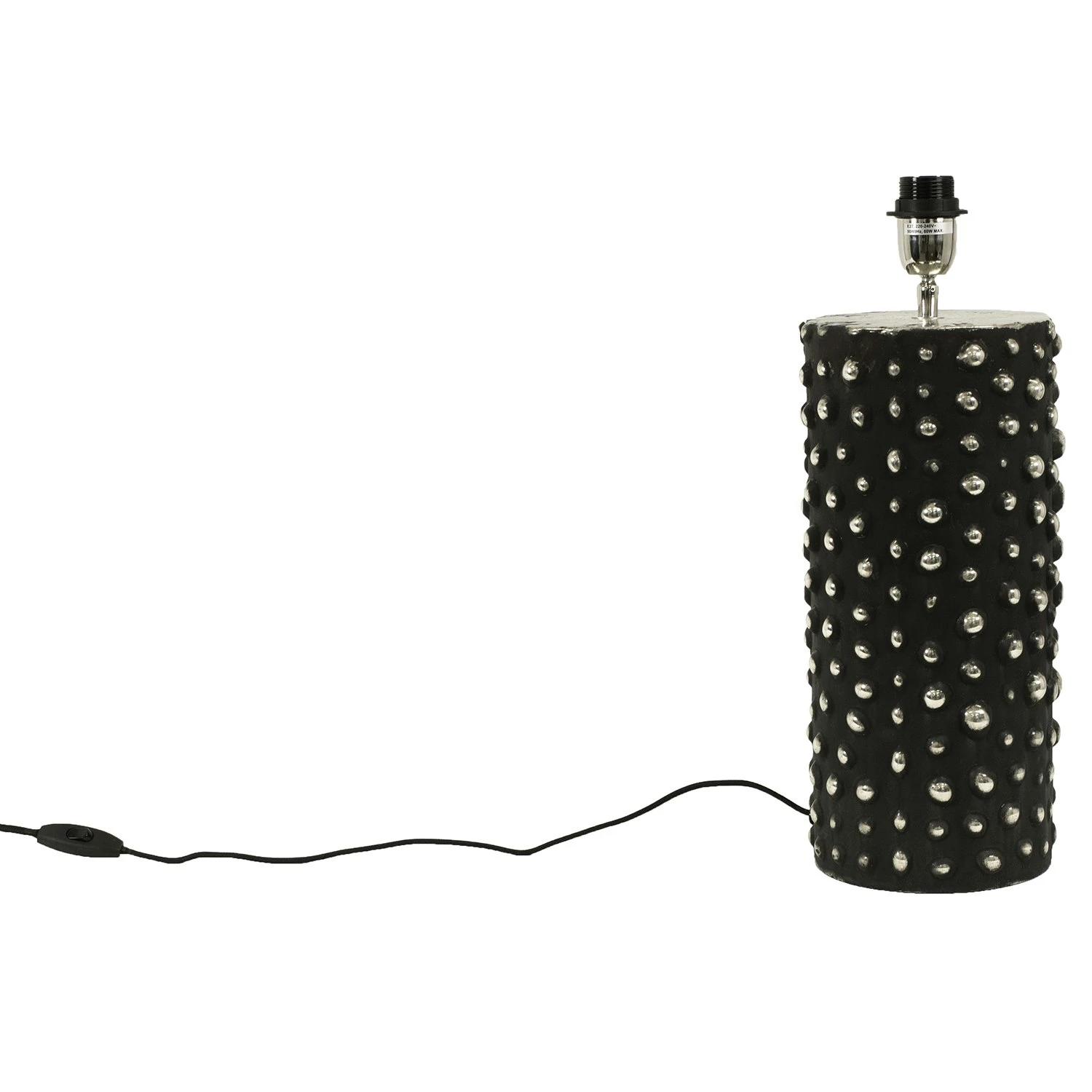 Trendy Lampensockel Platz in der Mitte des Raumes oder auf der Fensterbank. Die Kombination der samtig schwarze Oberfläche zusammen mit den glänzenden Glas Knospen erregt Aufmerksamkeit. Hat gut sowohl mit dekorativer Lichtquelle oder mit einem Bildschirm nach Geschmack und Geschmack. Gut zu wissen: Switch, die auf der Schnur.